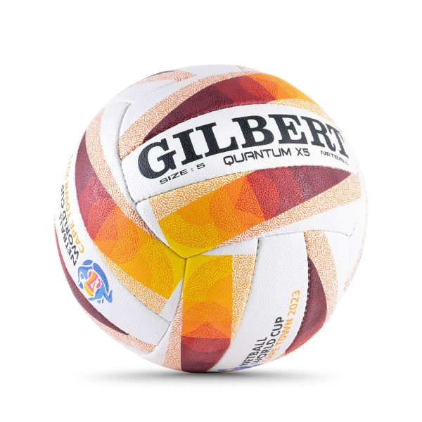 The Gilbert Netball World Cup 2023 Quantum Match Ball features the unique Tournament look and feel – inspired by the colours of the African Sunset and utilising a combination of geometric shapes and organic patterns.